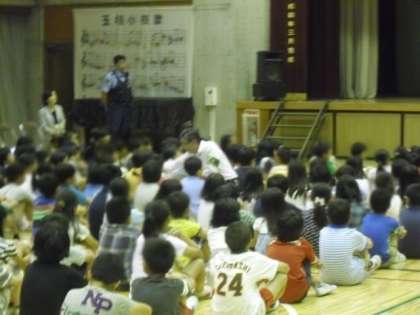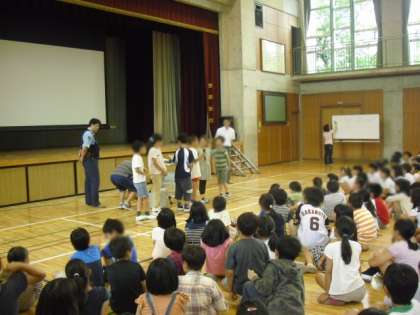 子どもたちは、とても真剣にDVDを見たり警察署の方々のお話を聞いたりしました。そして積極的に質問していました。