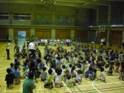 玉川警察署の3人の方々にいらしていただき、セーフティ教室を開きました。低学年の子どもたちは、自分の身を守ることができるようDVDを見ながら「いかのおすし」について学習しました。