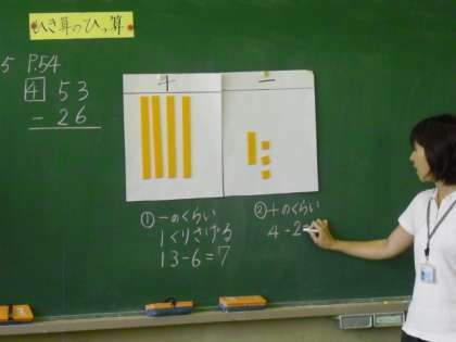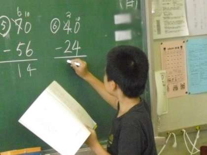 子どもたちは、計算するときには、きちっと繰り下がりを書いていました。この段階ではとても大切なことです。