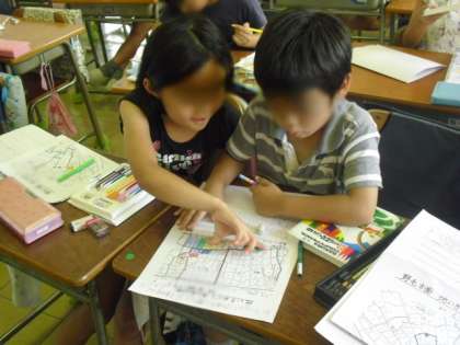 3方向の町たんけんに出かけた3年生が、各方面の地図を色分けしていました。各方面の特徴が見えてきます。自分たちの町をよく知り、自分たちの町をもっともっと好きになってほしいです。