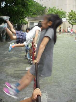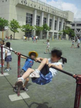 梅雨の晴れ間に、元気いっぱい遊んでいる子どもたち。鉄棒を熱心に練習しているお友達がいました。逆上がりや後方支持回転など、難しい技をぐるぐるやっている2年生です。とても上手でびっくりしました。