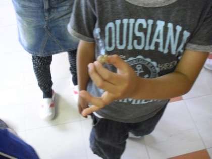1年生は、どこからかカタツムリの赤ちゃんを見つけてきました。