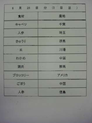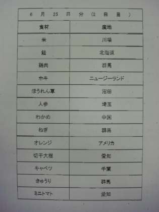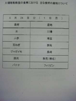 区役所から、川場移動教室における主な食材の産地情報が提供されましたので、お知らせします。