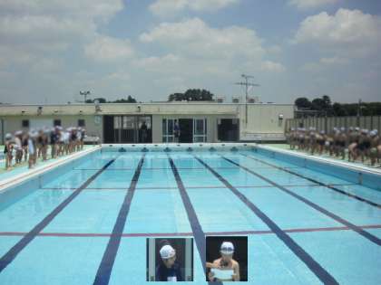 代表のお友達の言葉の後、もぐったり浮いたりして水慣れをしました。そして「ねことねずみ」で追いかけっこを楽しみました。