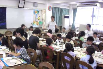 今日は、1年1組のランチールーム給食でした。3人の調理師さん方と一緒に給食を食べました。ピーマンがたっぷりのチンジャーロースですが、どのクラスもよく食べていました。