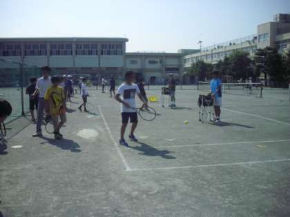 校庭ではサッカー、テニス、野球部の活動がありました。
