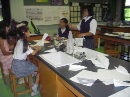 科学部ではよく飛ぶ紙飛行機をつくりました。中には10m以上も飛んだ飛行機がありました。