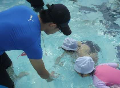 入水の仕方を復習し、水かけっこをしたり、もぐったりと、1年生の嬉しそうな声がプールに響いていました。