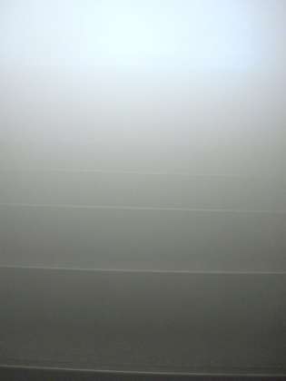 給食室から出火したので中央階段は使えないという想定で避難訓練を行いました。3年生と5年生の煙中訓練も兼ねていました。そのため、中央階段の防火扉を閉め、機械を使って煙が充満している状態にしました。