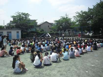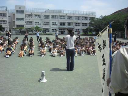 3年生と5年生は、煙で前がよく見えない状態でも、あわてずに避難してきました。他の学年の子どもたちもとても静かに避難してきて全員が集まるのを待つことができました。先生方のお話もしゃべることなくしっかりと聞くことができました。とても大切なことです。