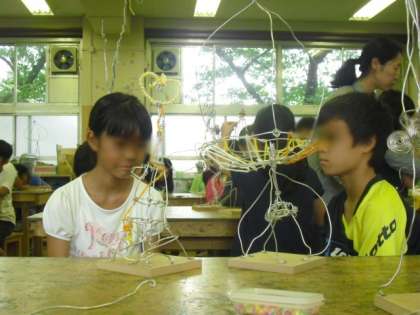 倒れないように造るとともに、デザインも凝ったツリーが図工室にあふれていました。