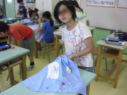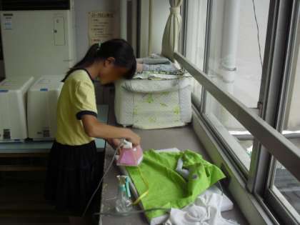 ミシンを使って縫ったり、アイロンを使って飾りをつけたりしました。