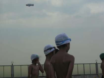 飛行船がみんなの歓声にこたえて、みんなの上をぐるっと一回りしてくれたところから始まりました。
