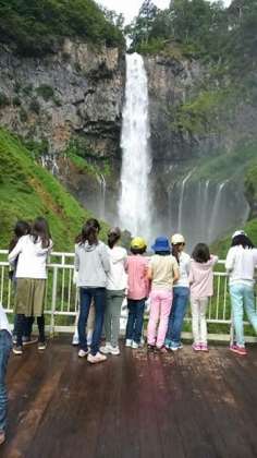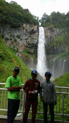 宿舎を出発し、今日の最初の目的地「華厳の滝」の見学です。青空も見え、9時ごろの気温が21度とさすがに「下界」とは違います。
