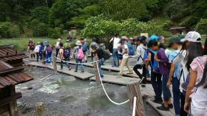 湯の湖に向かいます。いよいよハイキングが始まります。