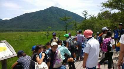 戦場ヶ原の真ん中あたりに到着しました。男体山がとてもきれいです。天気も上々です。
