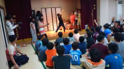 夕食後の室内レクリエーションが始まりました。まずは、全員が短歌をつくり、レク係が何作かを披露し、つくったお友達を当てるゲームをしました。日光の思い出がいっぱい詰まったレアな短歌が次々に出てきました。その後はジェスチャーゲームで盛り上がりました。
