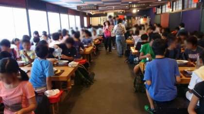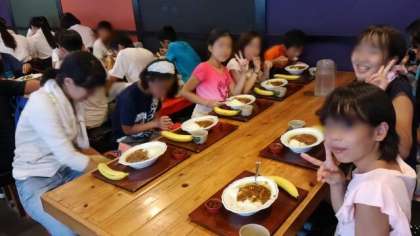 予定の12:00よりも早くお昼ご飯です。カレーライスとバナナをいただきます。
