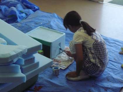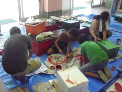 8月30日(日)のアドベンチャーin多摩川をめざして今日も筏の準備が進められています。すてきな筏ができそうです。