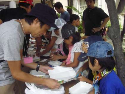 毎年恒例の、おやじの会主催によるサバイバルキャンプです。消防署、消防団他地域関係者の方にご協力いただき、防災に関する訓練と意識啓発をねらいとして行っています。今年も40人以上の子どもたちが参加しました。