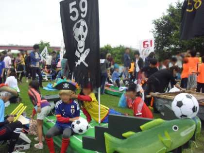 開会式の後、玉堤の「玉堤リゾートブルーハワイ(2)」が1組目、「玉堤風林火山(26)」が6組目、「Theサッカーパイレーツ(59)」が12組でスタートします。
