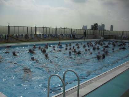 みんなで水慣れをした後、検定の開始です。みんなが自分の目標を目指して一生懸命泳ぎました。