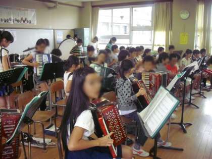 全員がそれぞれの担当の楽器を一生懸命練習し、友達と音合わせをしていました。