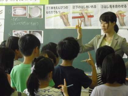 食育の一環として、今日も2年生が栄養士の中山先生と箸の使い方の学習をしました。中山先生の研修も兼ねています。