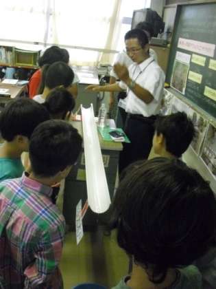 今日の授業は、ティームティーチングの方式で、中学校の先生にも子どもたちの指導に加わっていただきました。今日のために、三校の先生方は、夏休み前から話し合いを繰り返し授業の組み立てや教材の準備等に協力していただきました。