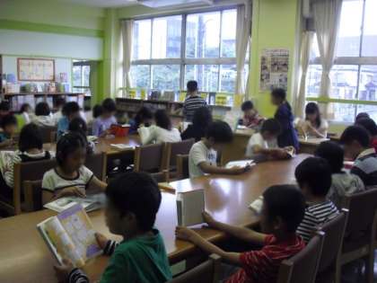 校庭で遊ぶことができませんでしたが、子どもたちは休み時間を校舎内で上手に楽しんでいました。図書室では、とても静かに本の世界に入り込んでいました。