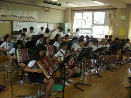 5年生の音楽です。グループごとに練習した後に、合奏しました。