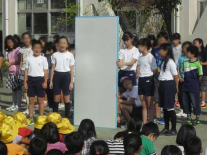 ことばは、時や場所、相手によって使い方が変わってきます。職員室やお友達の家にうかがった時などを例に挙げながら、5年生がみんなに伝えました。とても立派で、みんなは、真剣に聞いていました。
