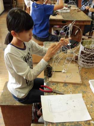 アルミ線を自由に変化させながら、自分が作りたいイメージに思いを広げて、ランプの骨組みを作っていました。一人ひとりが創造力を働かせながら、しっかりとした骨組みを作っていました。