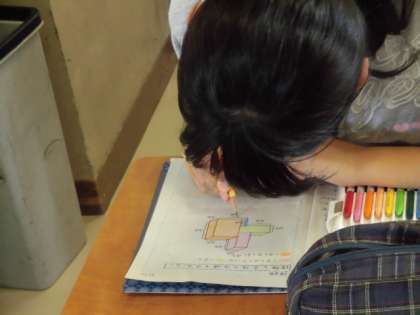 また、自分の考えをお友達が理解しやすいように、立体を色分けしたり、記号を付けたりして表現を工夫することができました。