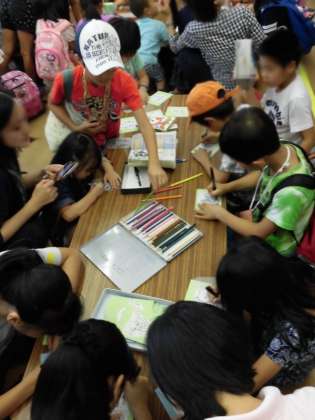 バザーとBOPのプラ板、みどり会の皆さんのデコパージュです。