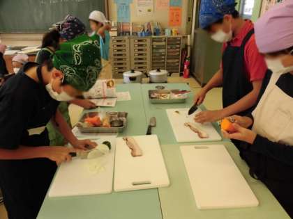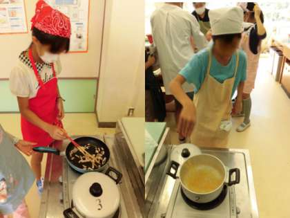 前回の家庭科の学習で調理の計画を立てていた6年生が、ナポリタンづくりに挑戦心なした。