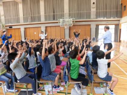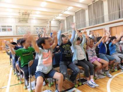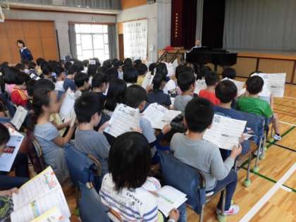 最後は「手のひらを太陽に」を手話を交えて歌いました。先生の元気なリードに合わせ笑顔がはじけていました。授業が終わってもずっと歌を口ずさんでいました。