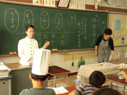 「味覚の一週間」事務局より出前授業で、味覚について学びました。フランスで「子どものうちに味覚を育てることが健康で豊かな食生活をつくる」という考えで始まり、日本でも実施されるようになりました。プロの料理人達が先生になってくれます。