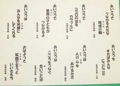 玉堤小学校のあいさつ標語が決まりました。