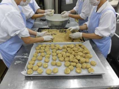 さつまいもに白玉粉と豆乳、砂糖を練り、ごまをつけて揚げました。もちもちとした食感にほそ良い甘味で人気でした。