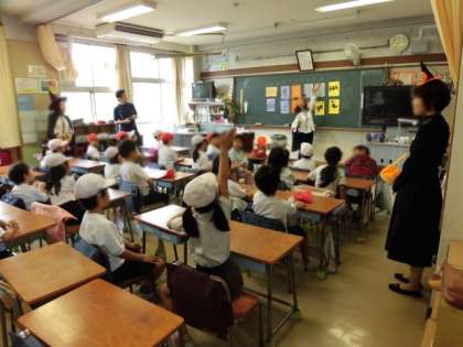 朝の英語タイムで、1年生は