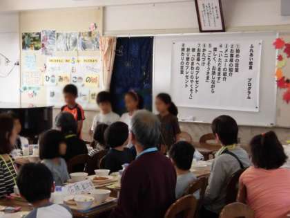最初は少し緊張していたようですが、すぐに楽しく話がはずんでいました。最後にクラス全員で「ひまわりの歌」を歌いプレゼントを渡しました。楽しい時間を過ごし、お客様をもてなせた達成感がもてたようです。
