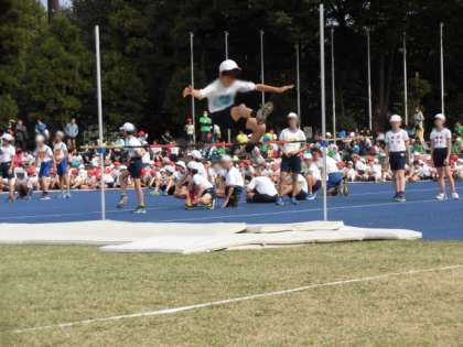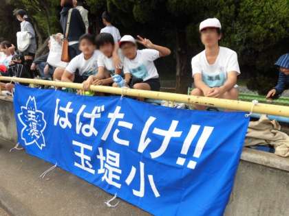 はばたけ玉堤小学校の横断幕掲げられた自席の後ろには保護者のみなさんも応援に駆け付けてくださいました。