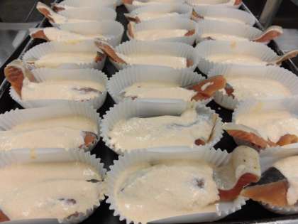 「紅葉焼き」は、焼くことで紅葉のようにきれいに色づくので紅葉焼きといいます。写真は焼く前と焼いた後です。にんじんとマヨネーズの酸が反応するためです。