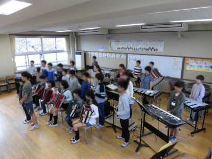 音楽の先生のおっしゃったとおり、リズムに乗り、各楽器の音色の特徴を生かしたすばらしい合奏となりました。さすが玉堤の6年生です。
