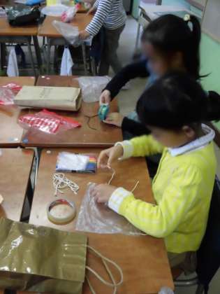 パラシュート、迷路など自分が作ってみたいものに挑戦です。同じものごとにグループになり、イメージを膨らませながらつくっていきました。