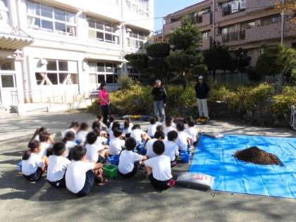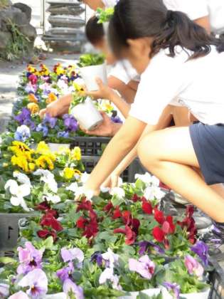 2年生の3クラスのお友達が、1時間ずつパンジーの寄せ植えをしました。等々力で花を育てていらっしゃる鈴木さんと用賀で野菜を育てていらっしゃる高橋さんが先生です。