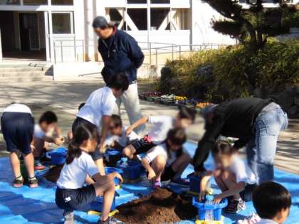 子どもたちは、お2人の先生方から、土の量や、ポットからの株の取り出し方などを教えていただきました。みんな、大切に大切に扱っていました。