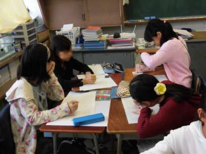 川場移動教室の様子を毎年5年生が、4年生に発表しています。その準備を進めていました。これまでの学習でまとめてきたことを紙面に書いたり、補足することを調べたりしていました。