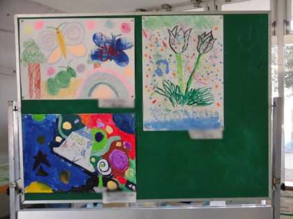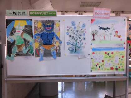 翠と溪の学び舎(尾山台中学校・尾山台小学校)の先輩やお友達の作品も掲示しています。すばらしい作品です。作品交流は、毎年行っています。
